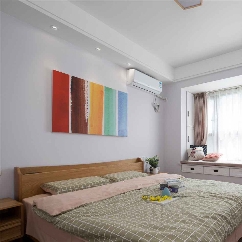 这个房子的空间没有任何多余的装饰,简单的吊顶,也没有电视墙,也没有隔断,也没有乱七八糟的照片墙,只运用了些色彩跳跃的装饰画来点缀,但是这种简单的背后,体现了生活本质的追求。