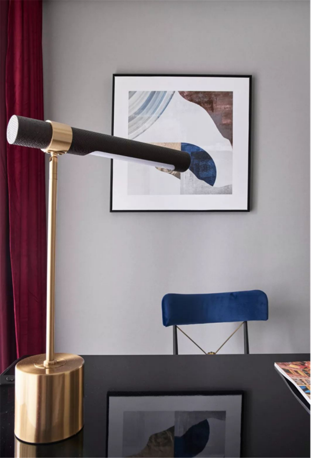 黑色与黄铜色的巧妙搭配,在光源的衬托下更有氛围感,复古的丝绒窗帘和素净的薄纱在深与浅的碰撞中造就一个诗意的存在。